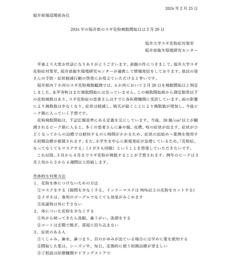 花粉飛散開始日プレスリリース(PDF)はこちら